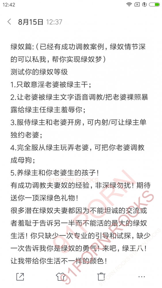 (5) 思想中的绿奴属性,这类或许才是绿奴的本质。 最后说几句,觉得受到启发的请回复完可以加我,非奴勿扰!你我时间宝贵!